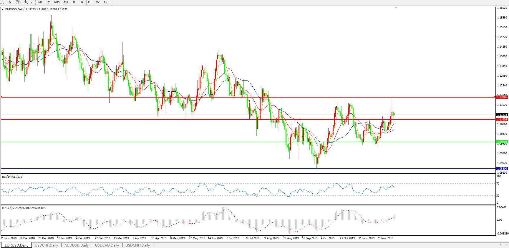 欧元兑美元EURUSD   日线图: