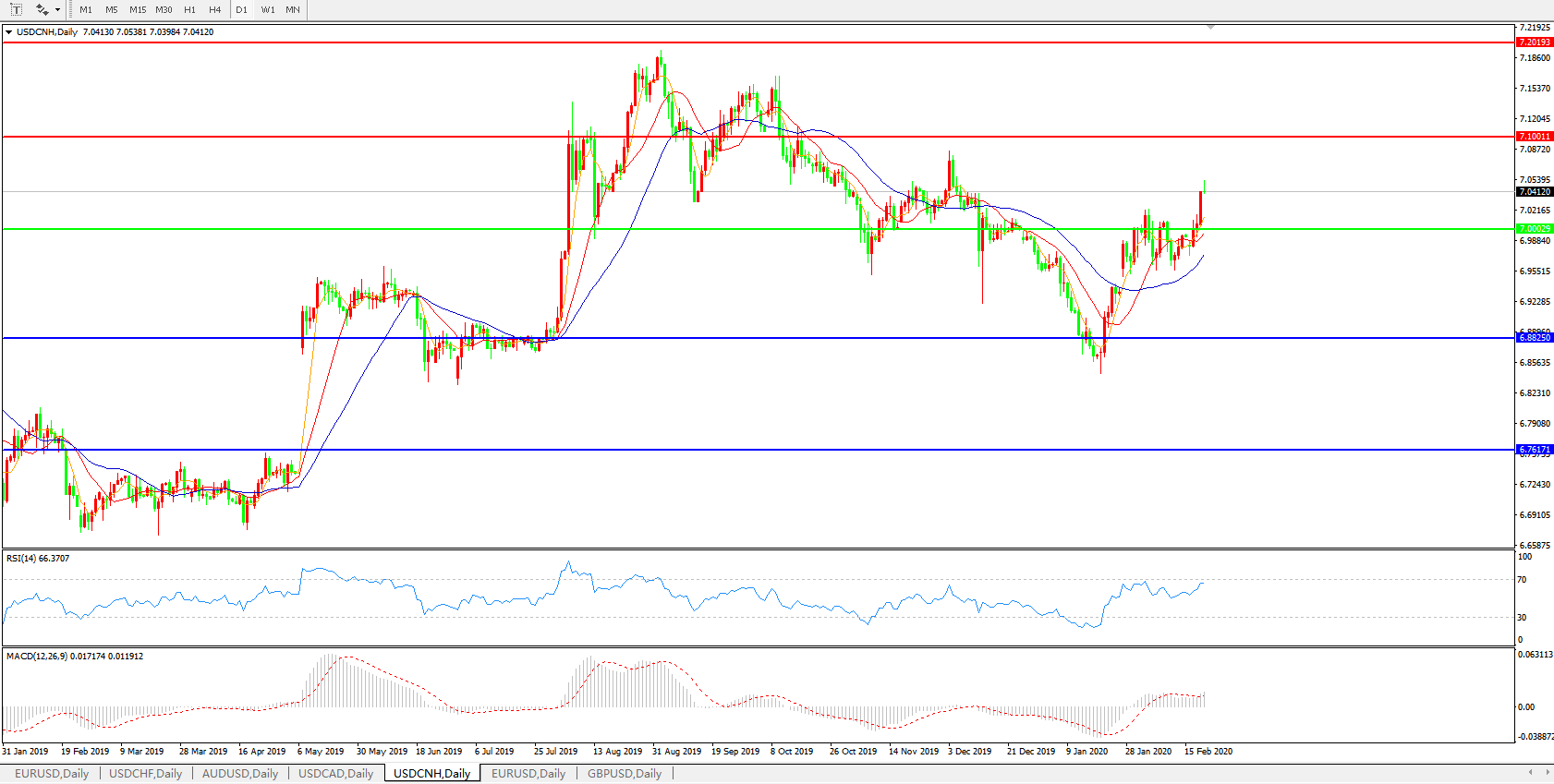 美元兑人民币USDCNH    日线图: