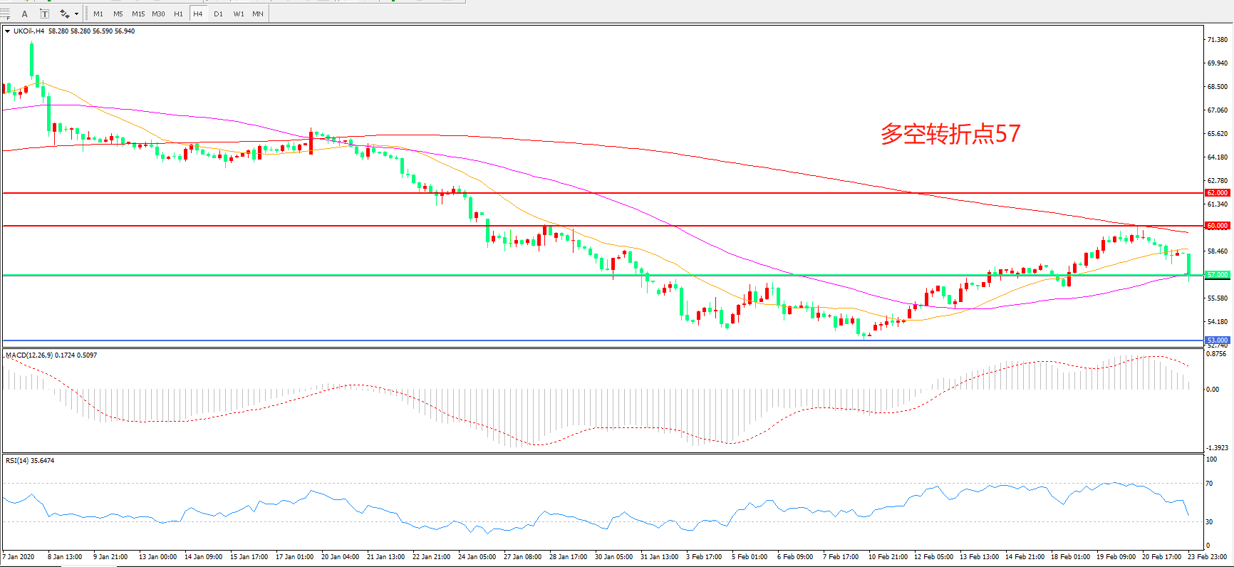 交易策略:在57.00之下看跌,目标53.00     50.00