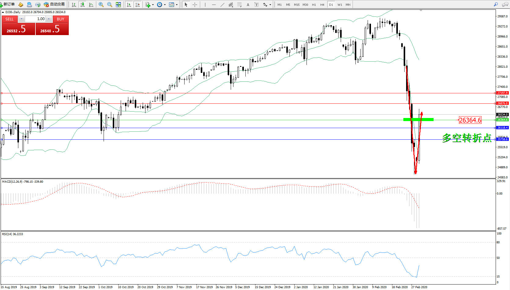 道琼斯指数3月2日(周一)收盘上涨1293.90点,涨幅5.09%,报26703.26点。美股周一大涨,主要股指尾盘强劲拉升,道指录得史上最大单日上涨点数,并创2009年以来最大日涨幅。市场仍在关注公共卫生事件的发展及其对全球经济的影响。市场对全球央行或将再次联手救市的预期升温。美国2月制造业活动放缓,因新订单减少,印证了对快速扩散的公共卫生事件会导致供应链中断的担忧。对美元利空的是,与其他许多央行相比,美联储在政策上有更大的空间,这些举措可能会对美元的吸引力造成实质性损害。