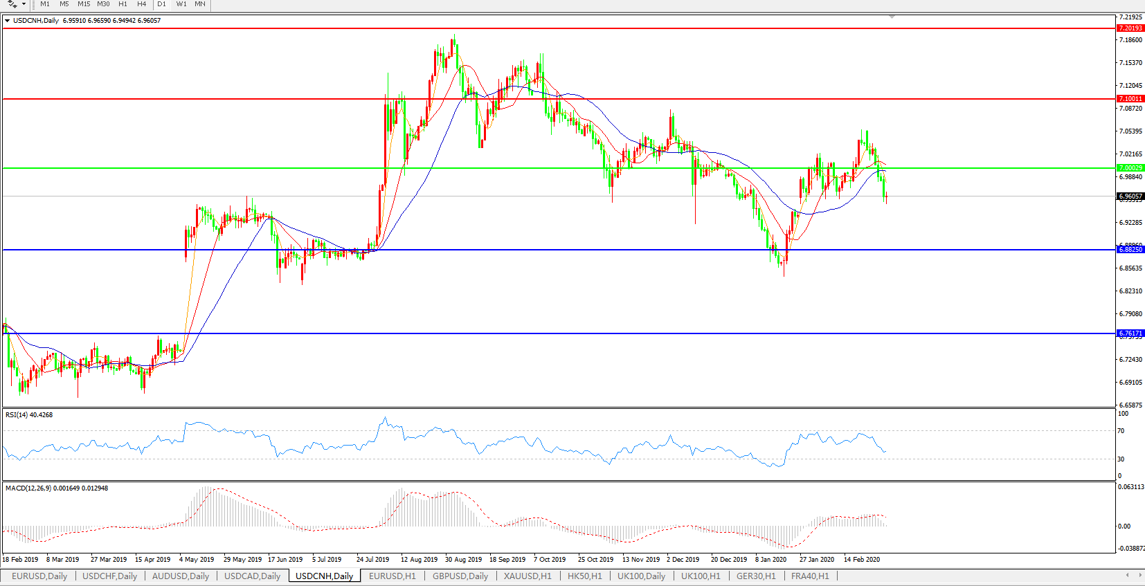 交易策略: 在7.0000之下,看跌,目标价位为6.8820,然后为6.7600。