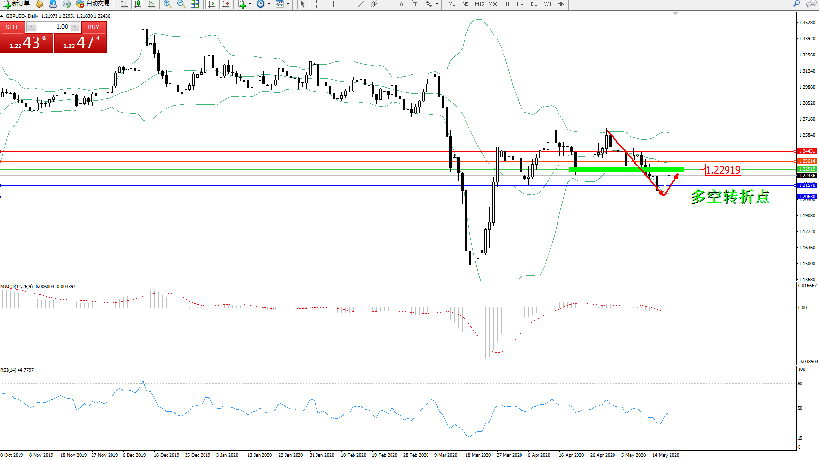 交易策略:1.22919下方看跌,目标1.215701.20630