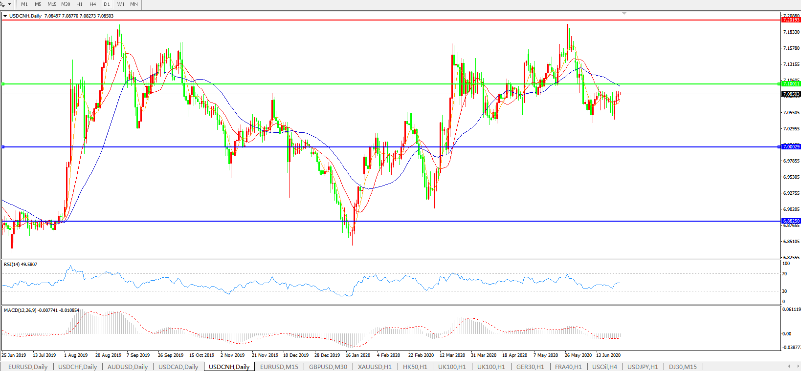 美元兑人民币USDCNH    日线图: