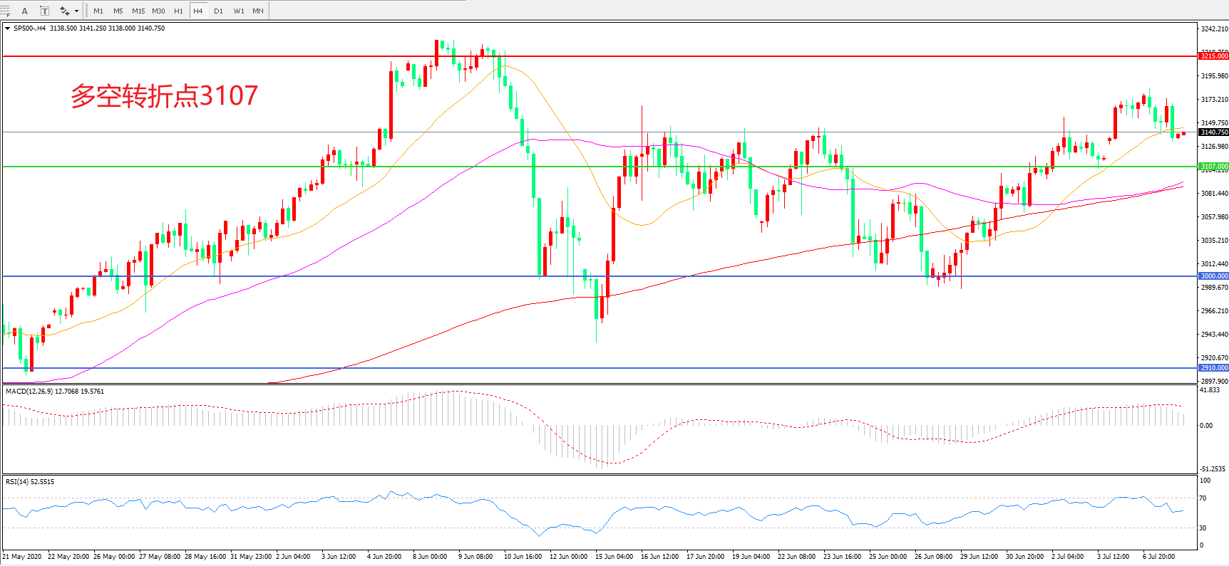 多空转折点:3107.00