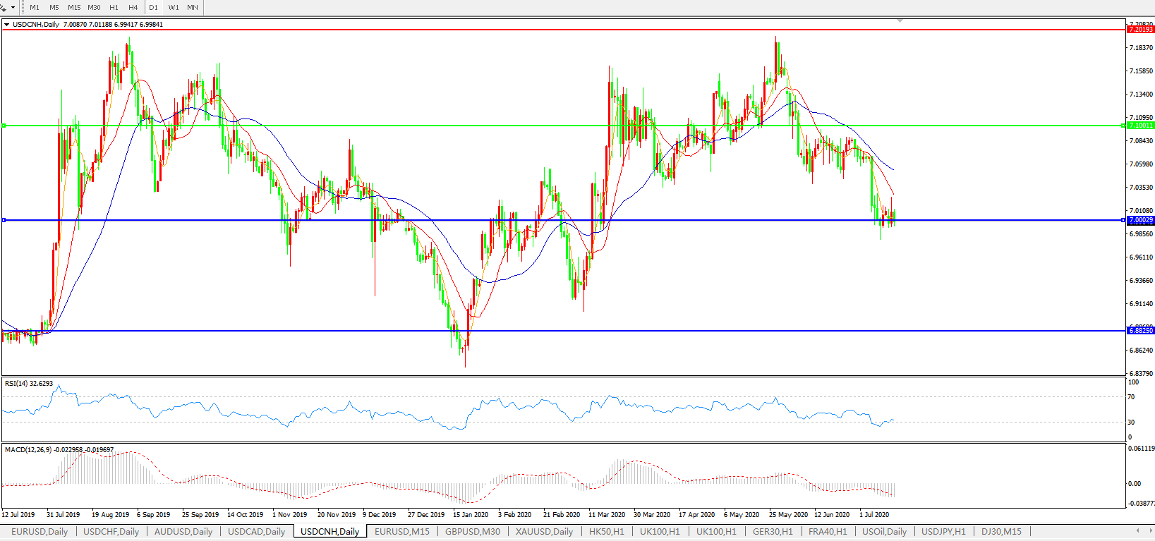 备选策略: 在7.1000之上,看涨,目标价位为7.2000,然后为7.3000。