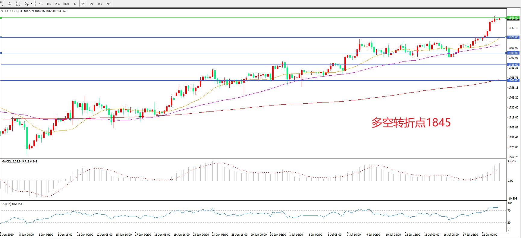 多空转折点:1845.00