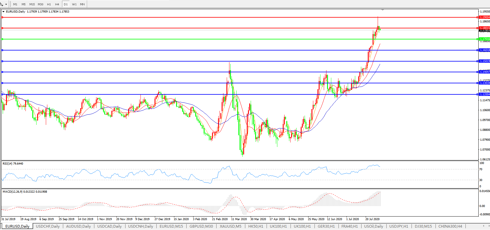 欧元兑美元EURUSD 日线图: