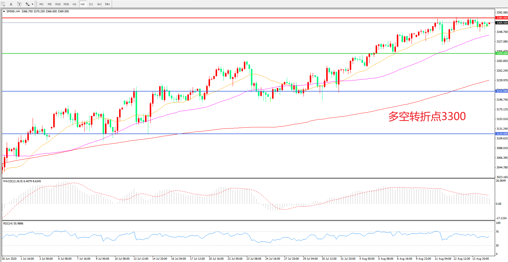 多空转折点:3300.00