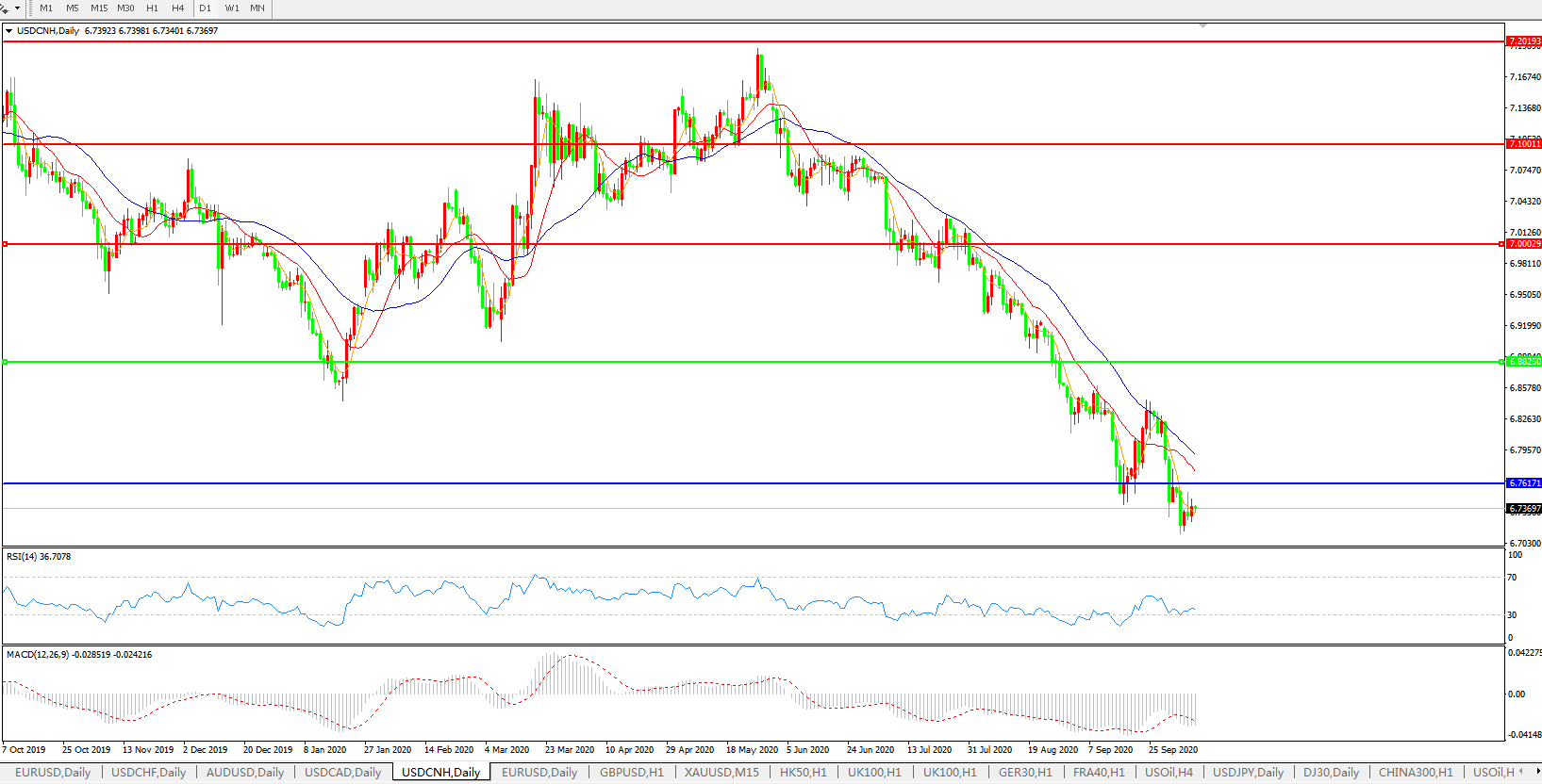 美元兑人民币USDCNH    日线图: