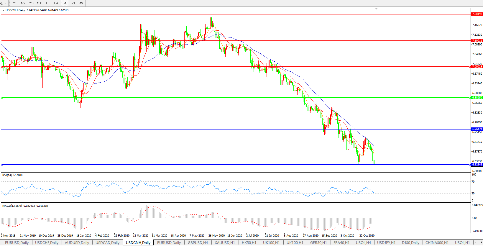美元兑人民币USDCNH    日线图: