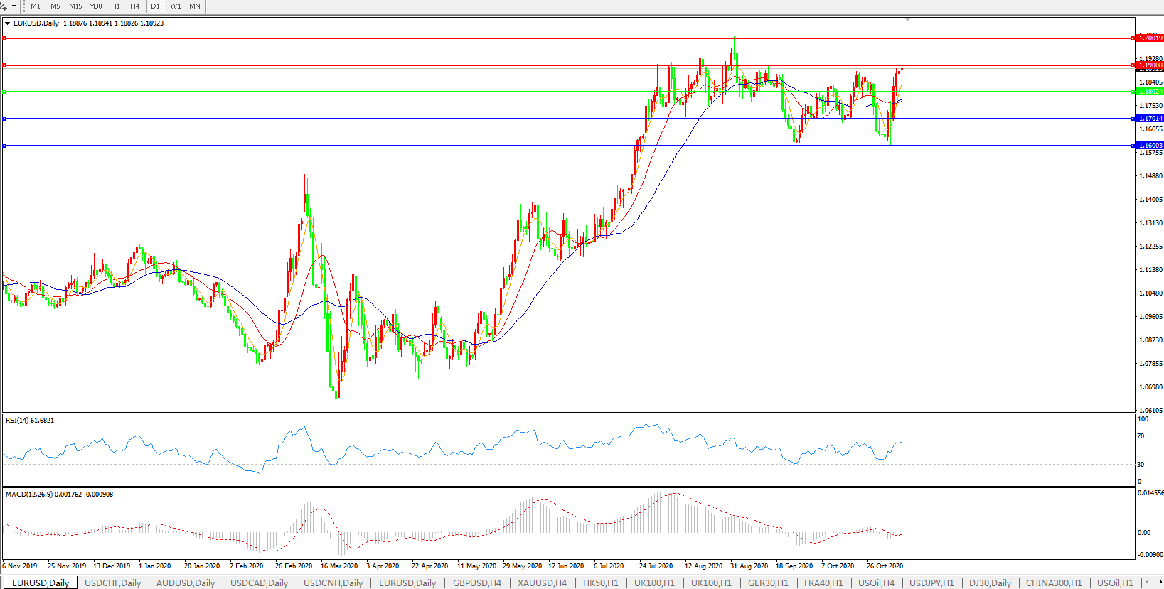 欧元兑美元EURUSD 日线图: