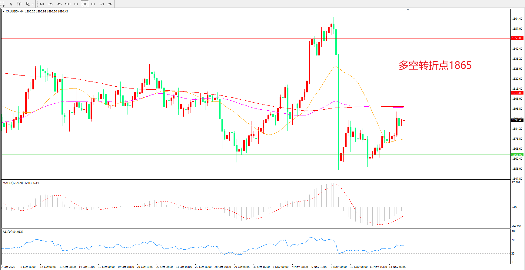 多空转折点:1865.00