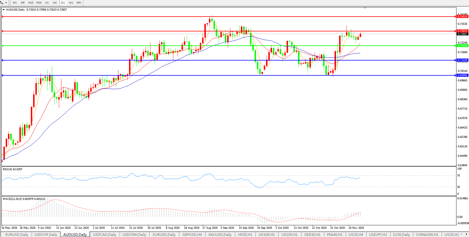 交易策略:0.7200上方看涨,目标0.7300、0.7400