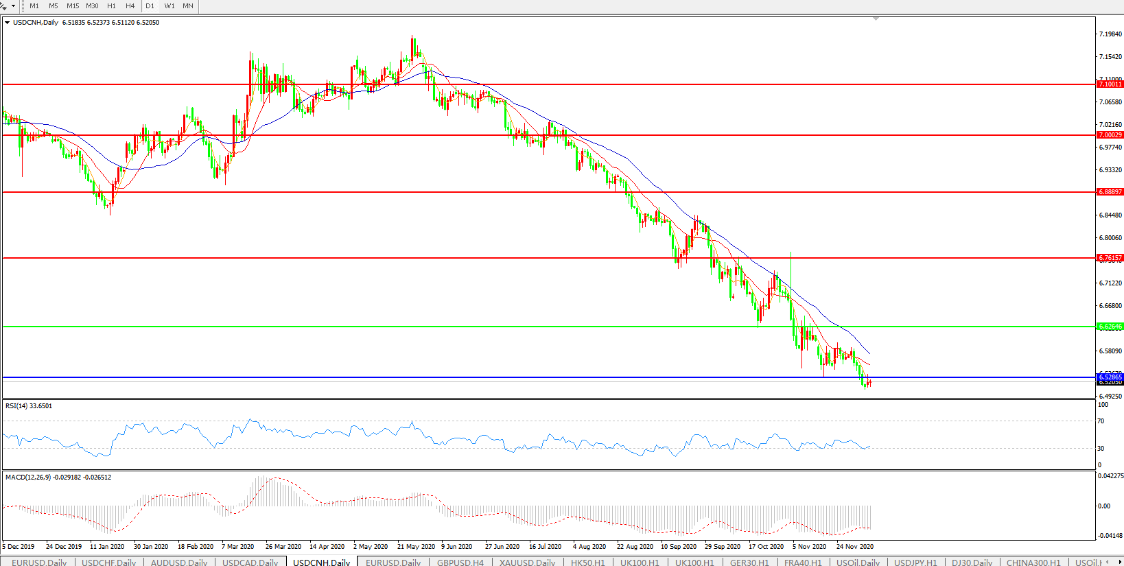 美元兑人民币USDCNH    日线图: