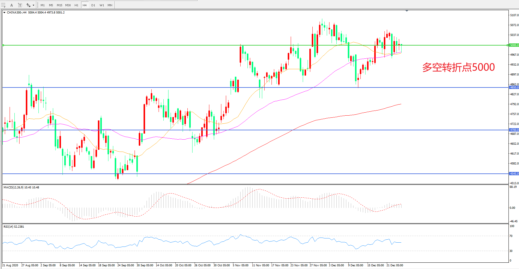 备选策略: 在5000.00之下看跌,目标4850.00        4700.00