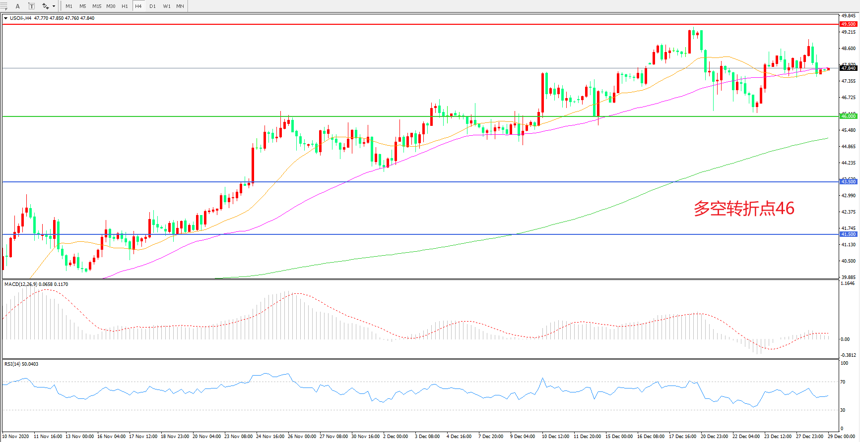 交易策略:在46.00之上看涨,目标49.50 53.00