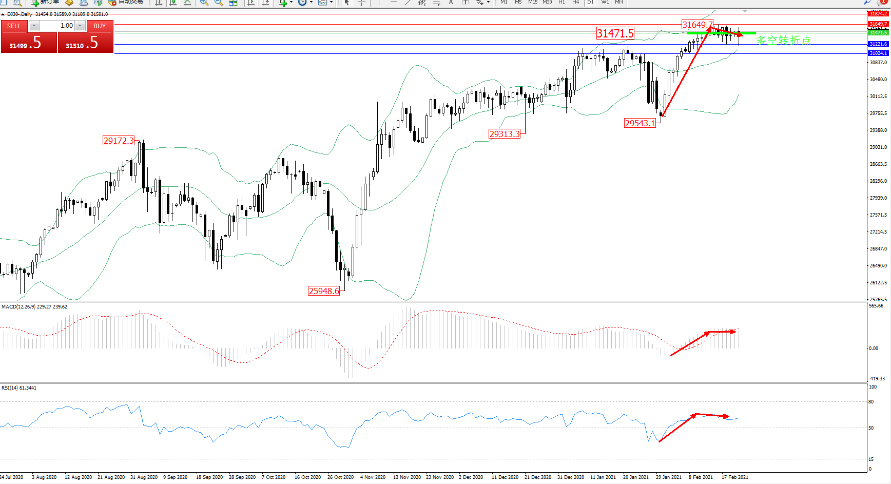 交易策略:31471上方看涨,目标31649、31874
