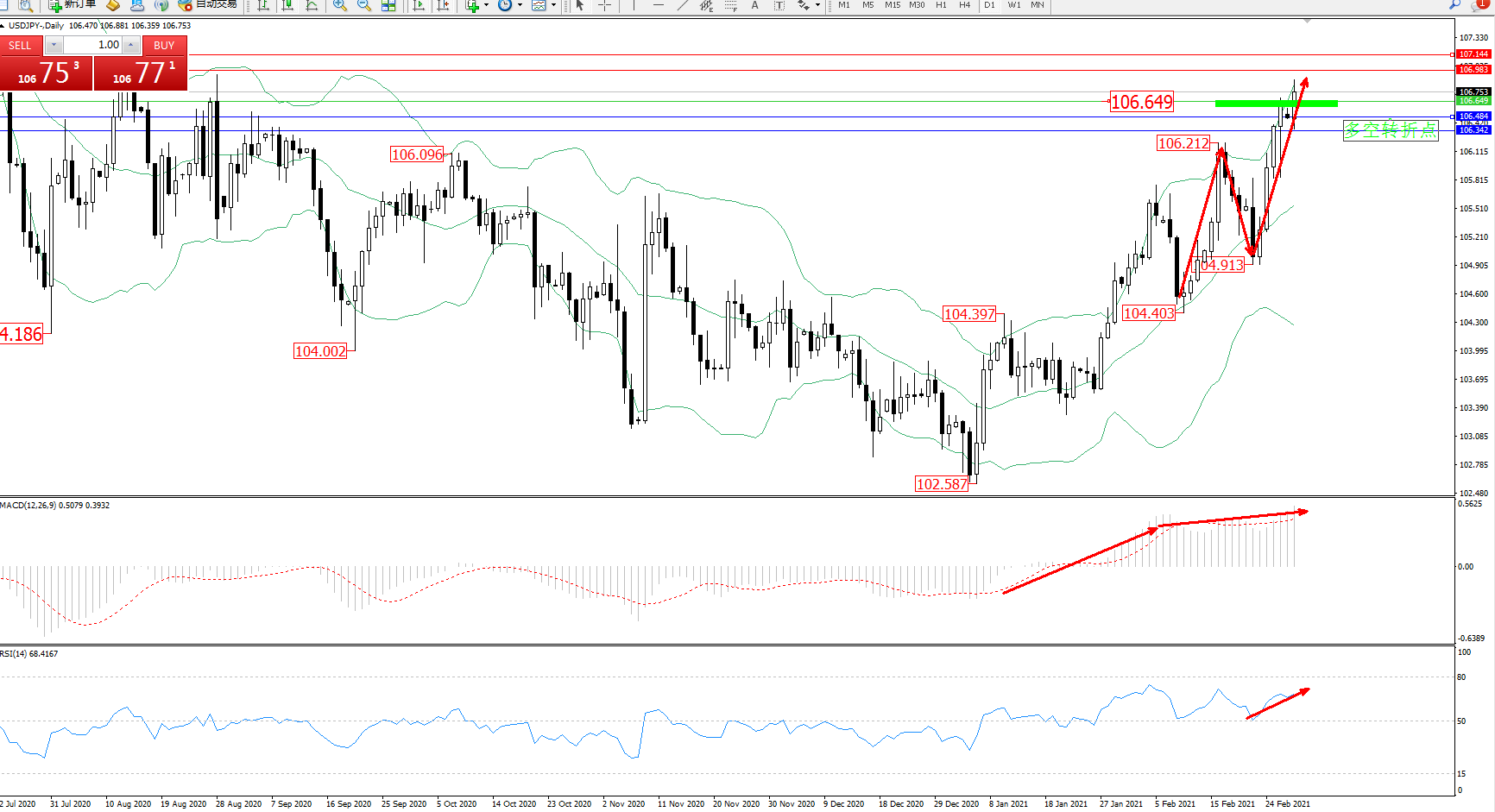 技术点评:多头动力延续布林带指标通道中上轨区间持续震荡上扬态势良好,高位延续上轨附近不断拉升上移中,且屡破其前期高位,尚未有止步迹象,布林带指标呈上行趋势走势良好,高位呈张口走势持续中,MACD指标处于多头区域高位持续震荡后不断上移中,RSI指标处于多头区域震荡向上移动持续中;