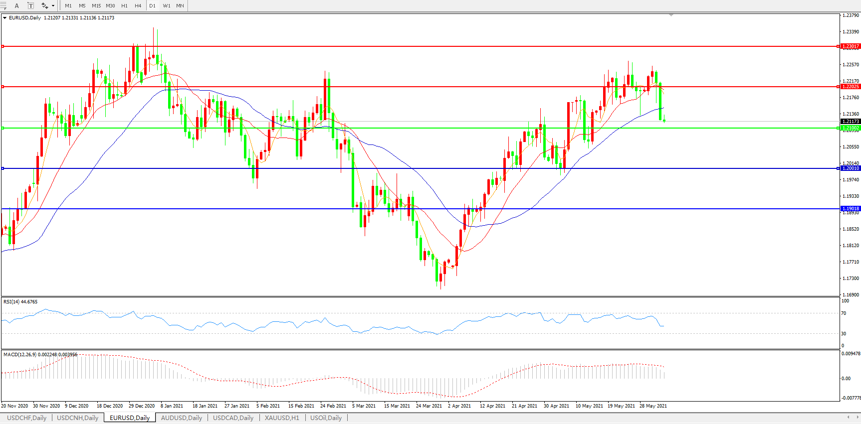 欧元兑美元EURUSD 日线图: