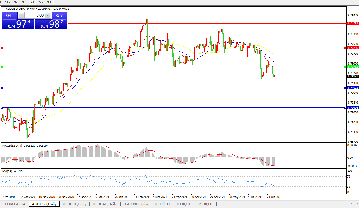 澳元兑美元短期目标为0.7480,考虑到即将到来的7月澳洲联储利率决议,汇价料获得积极因素推动,然而Delta毒株的传播以及首都城市的流动限制将令澳洲联储7月利率决议复杂化,当前已跌破0.7550的支撑位,焦点转向0.7500和0.7480。