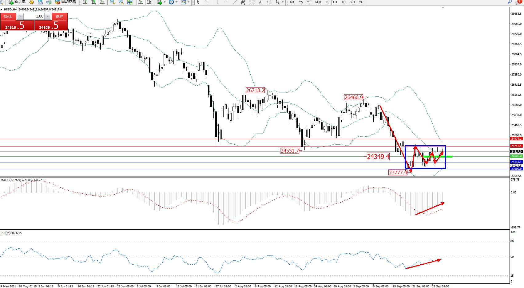 恒指HK50 ——4小时K线图显示: