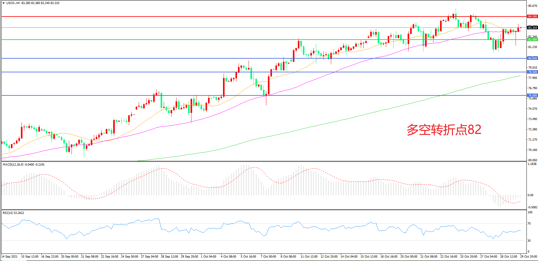 多空转折点:82.00