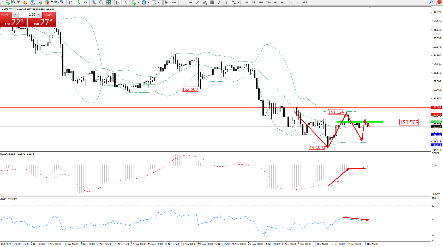 交易策略:150.508下方看跌,目标149.725、149.114