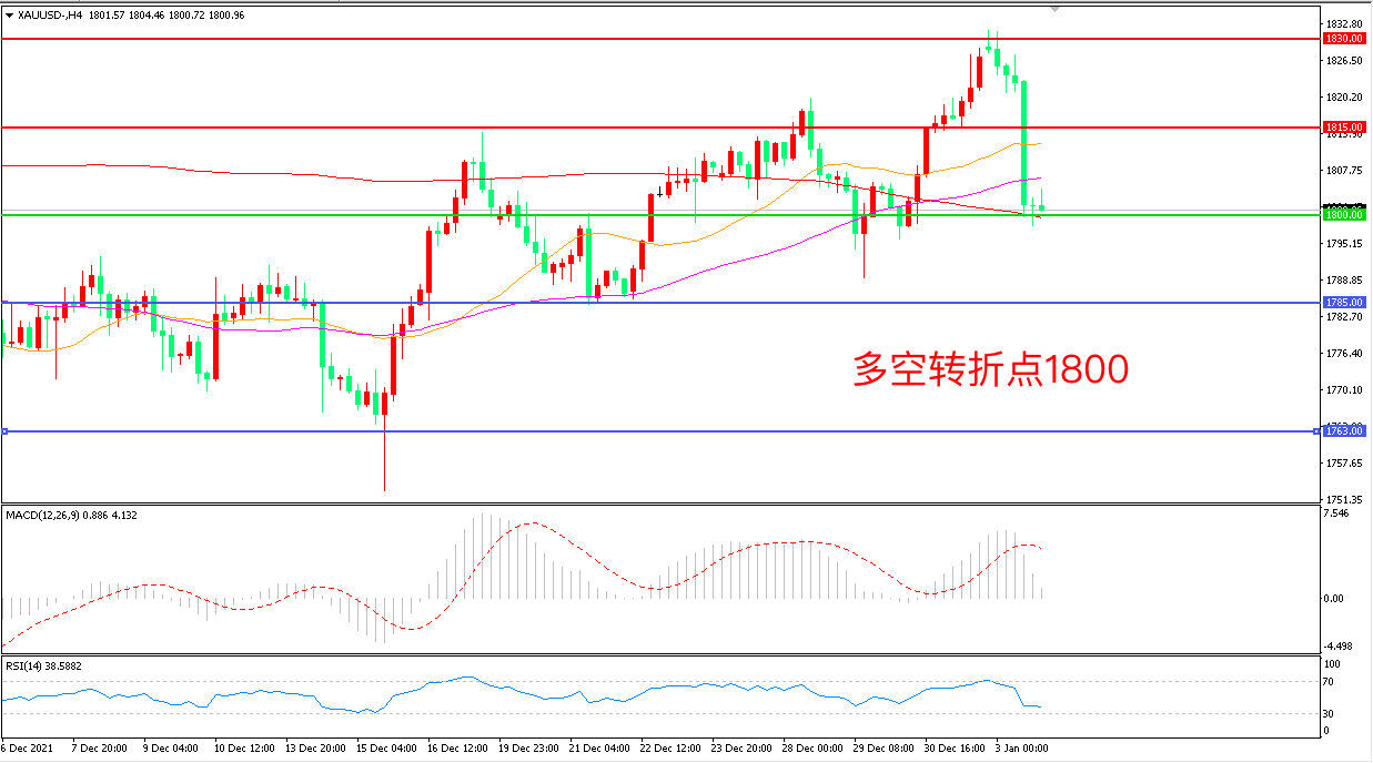 备选策略:在1800.00之下看跌,目标1785.00 1763.00