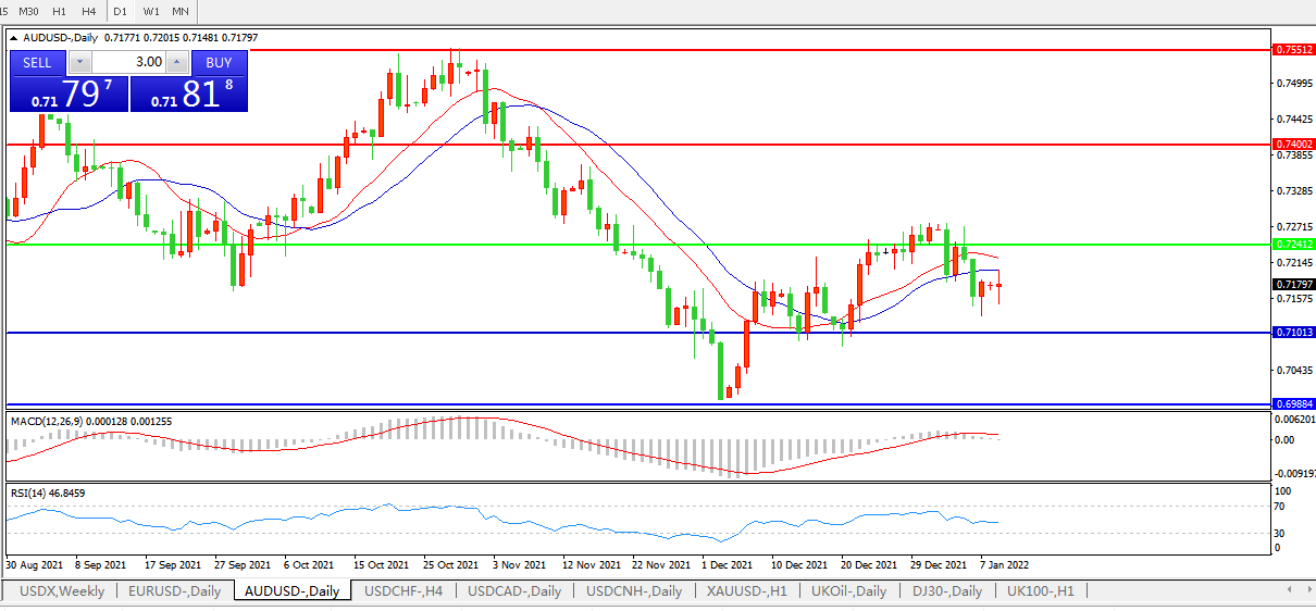 交易策略:0.7240下方看跌,目标0.7100、0.6980