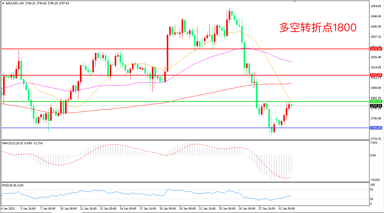 交易策略:在1800.00之上看涨,目标1815.00 1830.00