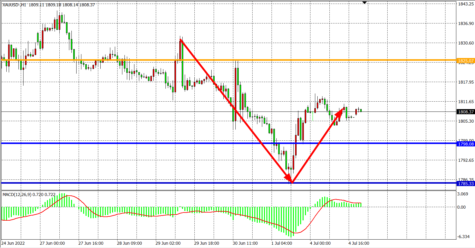 交易策略:在1798.00之下看跌,目标1785.00          1770.00