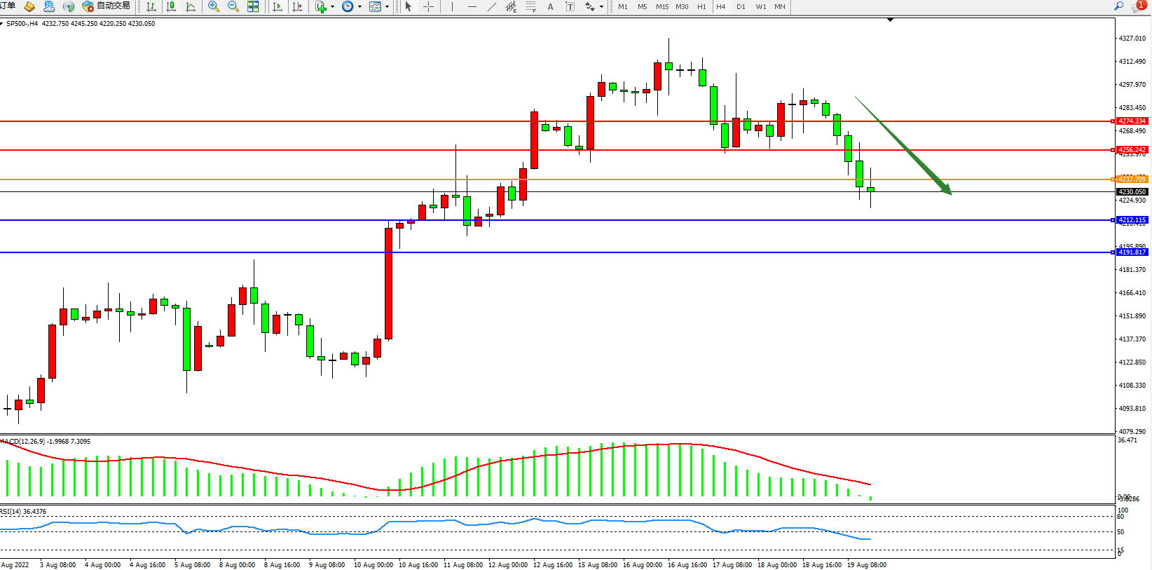 标普SP500——4小时K线图显示: