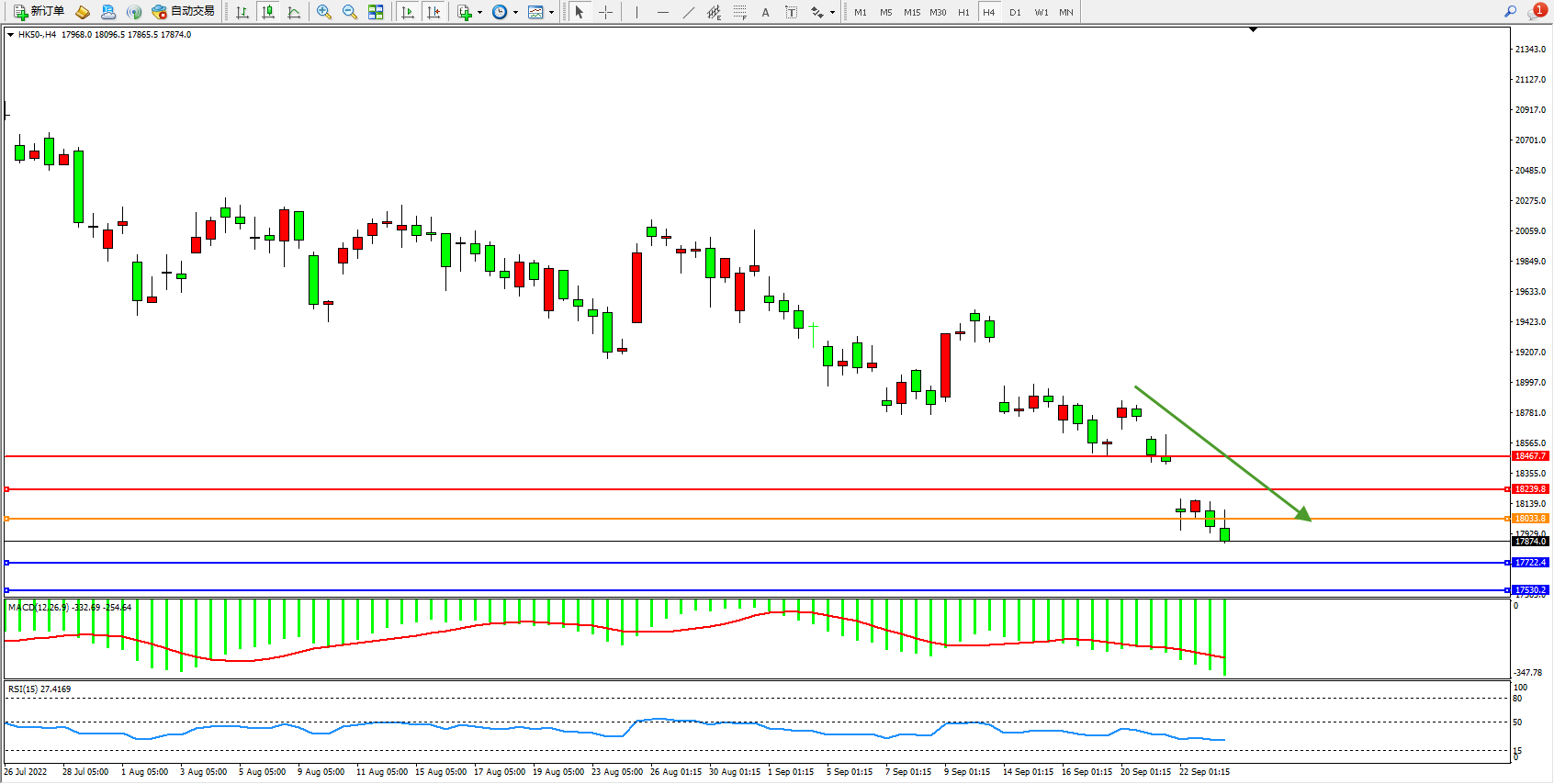 恒指HK50 4小时图