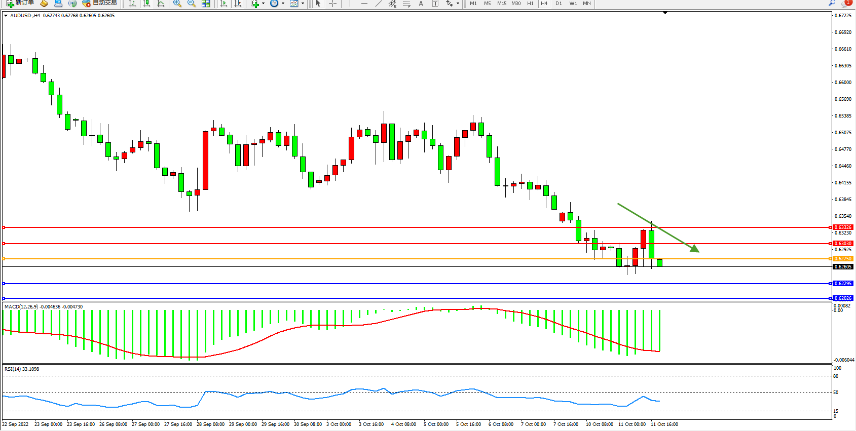 澳元美元AUDUSD——4小时K线图显示:
