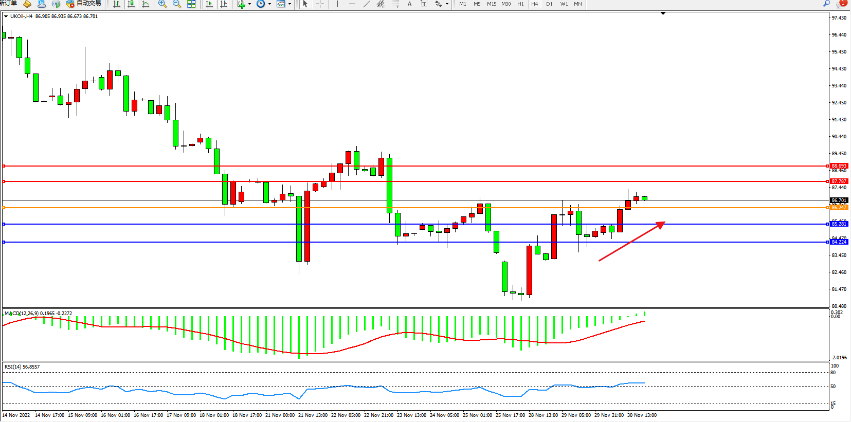 布油UKOil——4小时K线图显示: