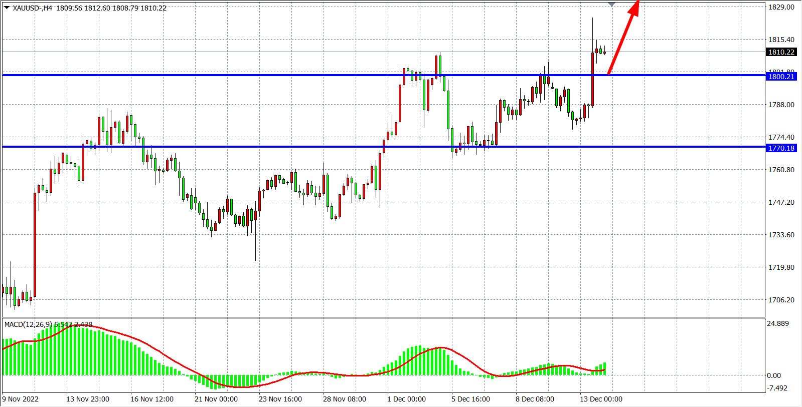 交易策略:在1800.00之上看涨,目标1825.00         1850.00