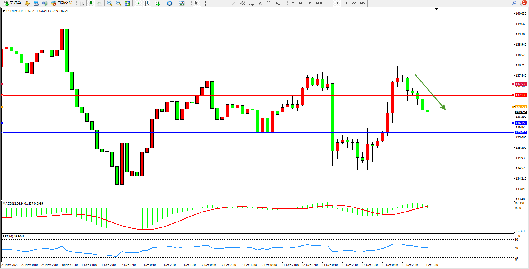 交易策略:136.731下方看跌,目标136.159、135.828