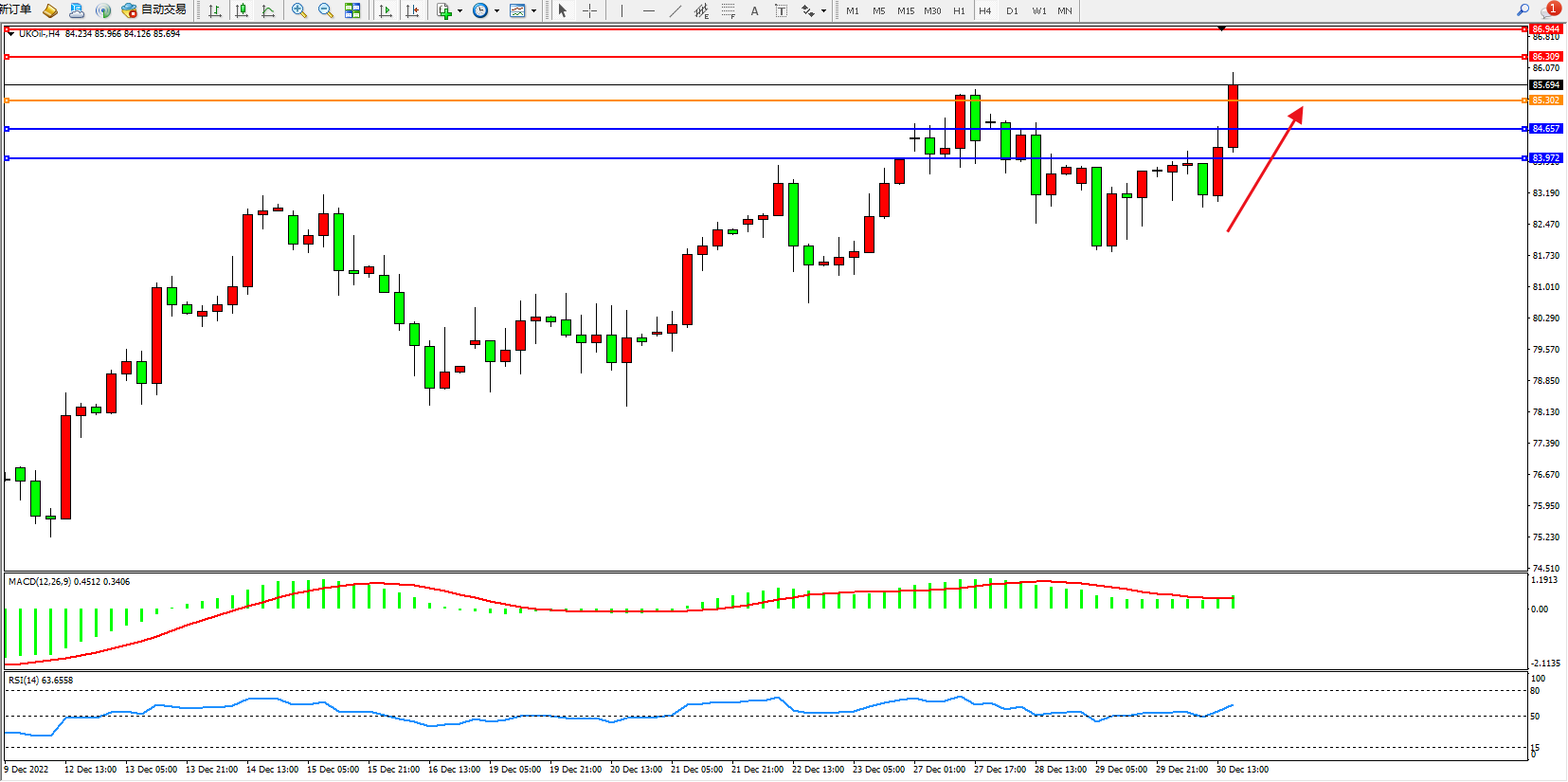 布油UKOil——4小时K线图显示: