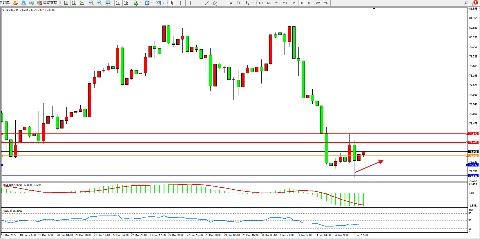 原油USOil——4小时K线图显示: