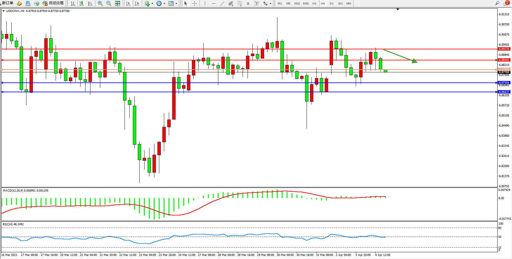 交易策略:6.87909下方看跌,目标6.87101 6.86537