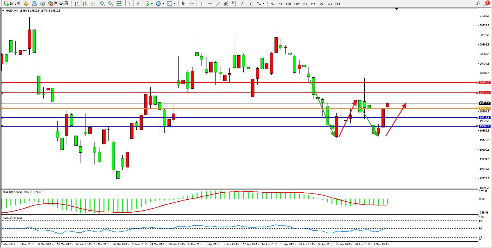 恒指HK50 4小时图