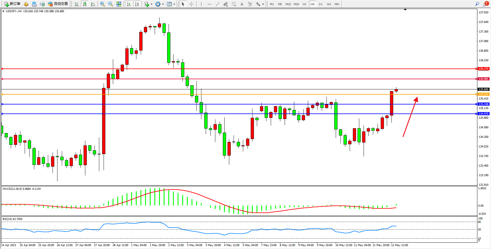 交易策略:135.534上方看涨,目标135.981 136.275