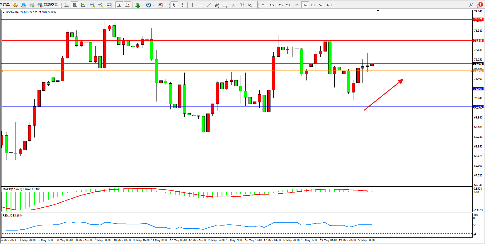 原油维持72.096附近震荡,市场预计未来几天将出现大量波动,并且随着达成提高债务上限的协议,原油价格将反弹。但随着其他经济逆风重新成为中心舞台,原油的上升空间将受到限制。
