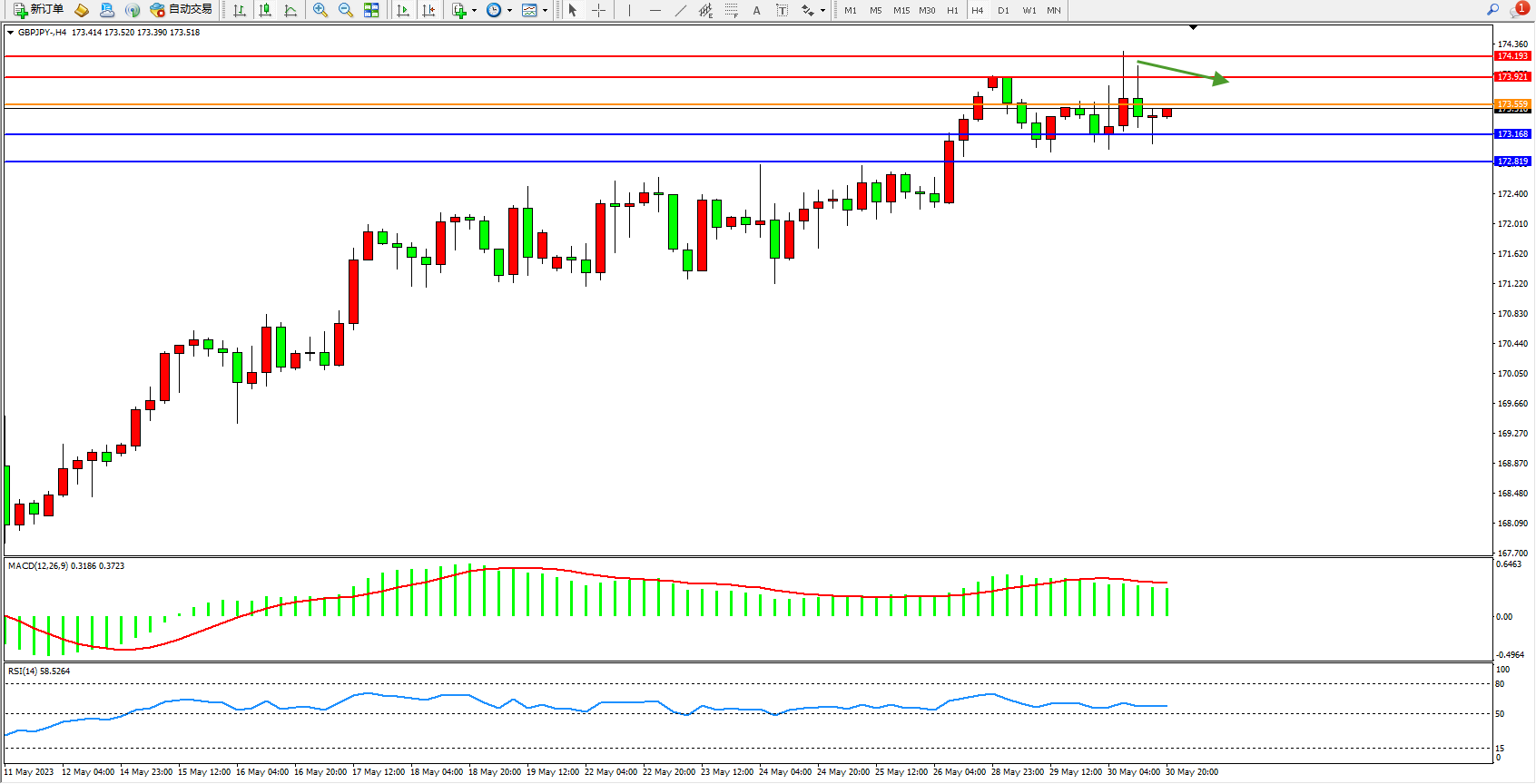 阻力位:173.921  174.193