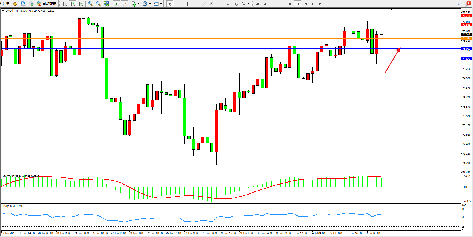布油UKOil——4小时K线图显示: