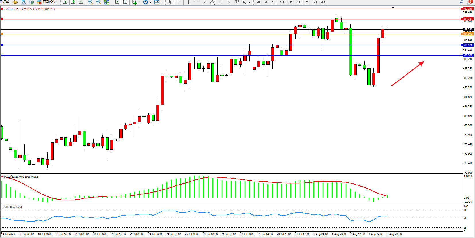布油UKOil——4小时K线图显示: