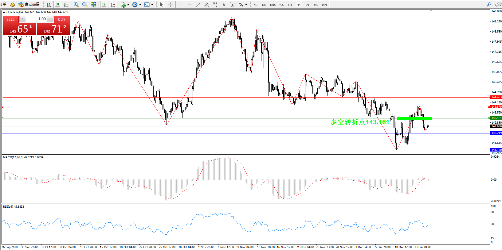 备选策略:143.161下方看跌,目标142.219141.170