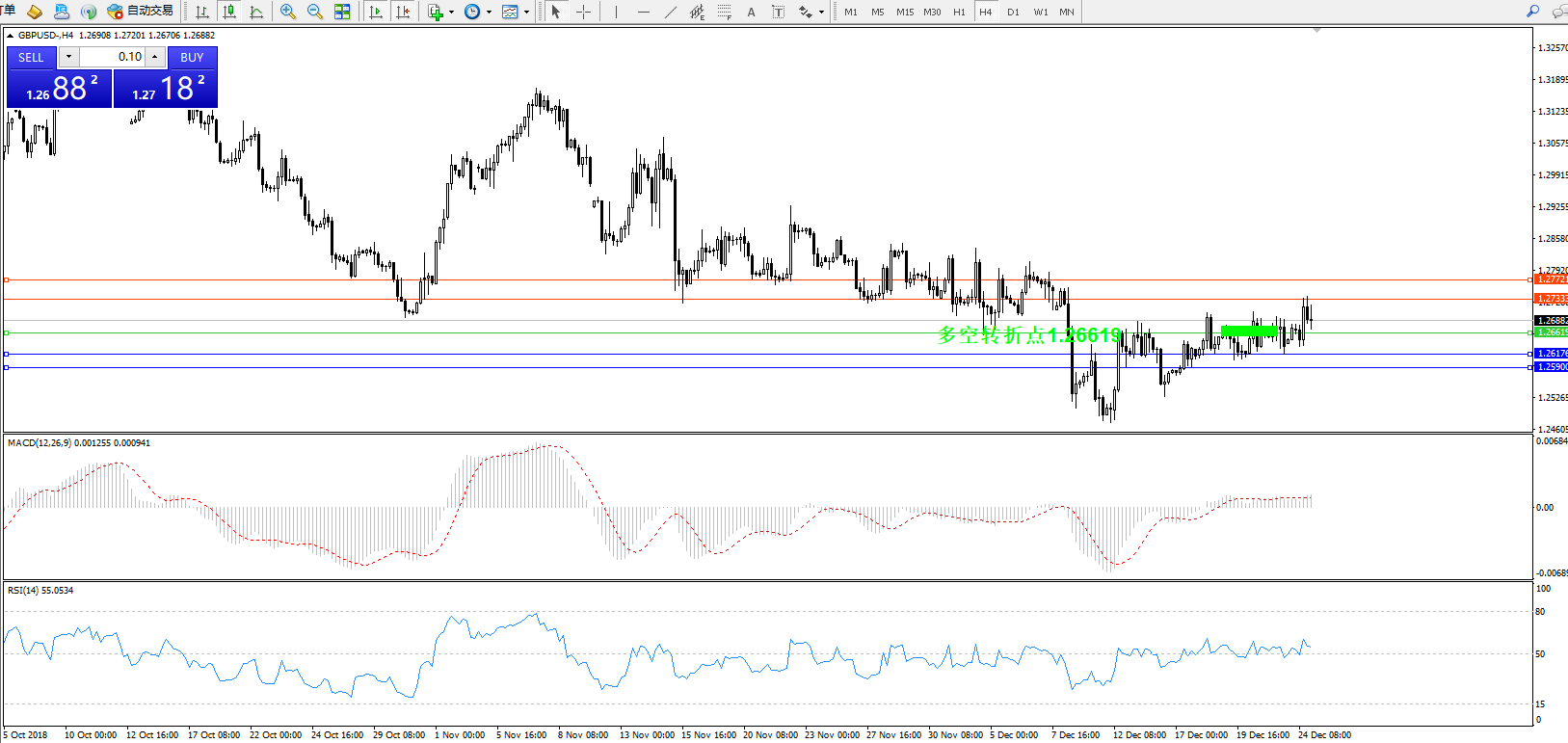 交易策略:1.26619上方看涨,目标1.27333、1.27721