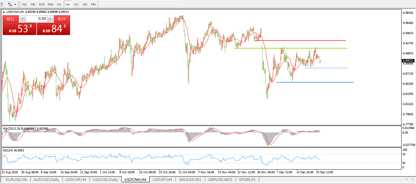 备选策略: 在6.9200之上,看涨,目标价位为6.9300,然后为6.9557。