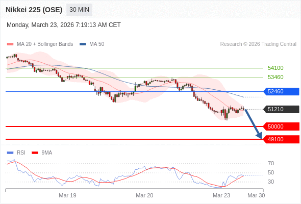 交易策略: 在 52460 之下,看跌,目标价位为 50000 ,然后为 49100 。
